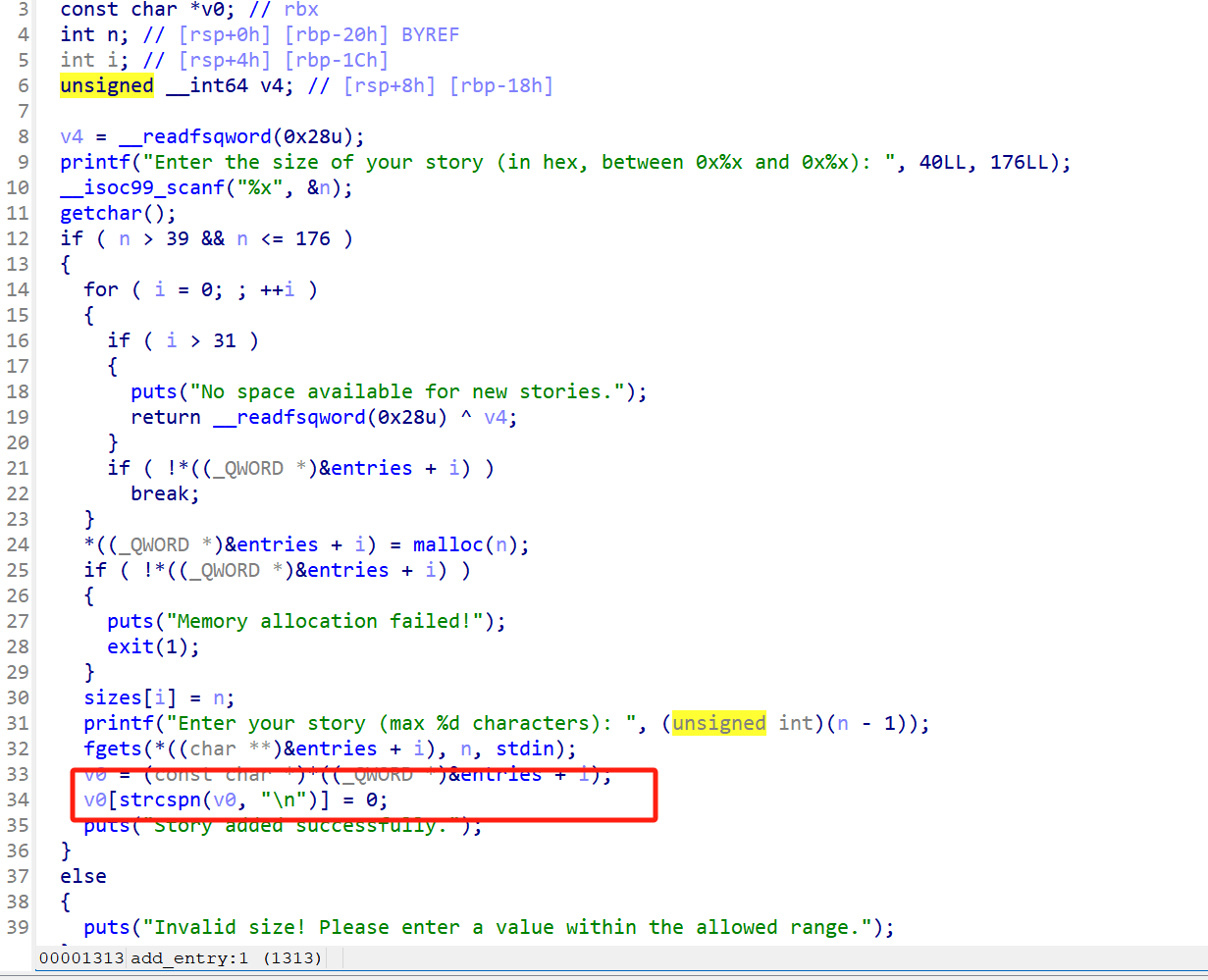 add和edit都有末尾置零,show直接被截断,没办法泄露出libc