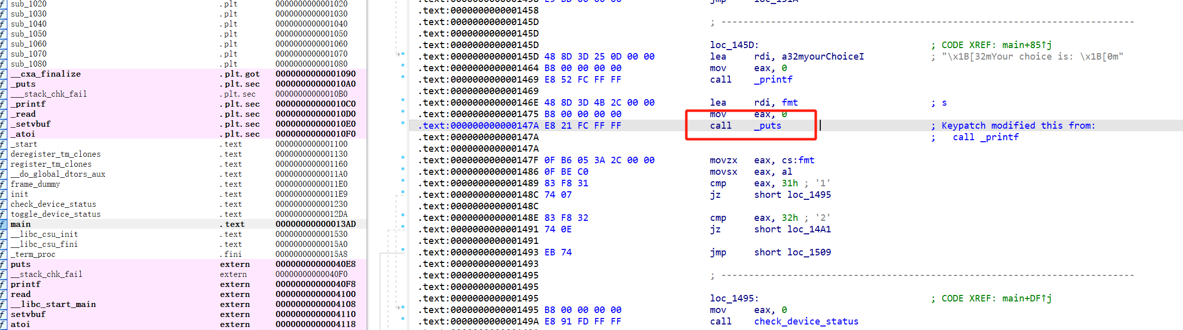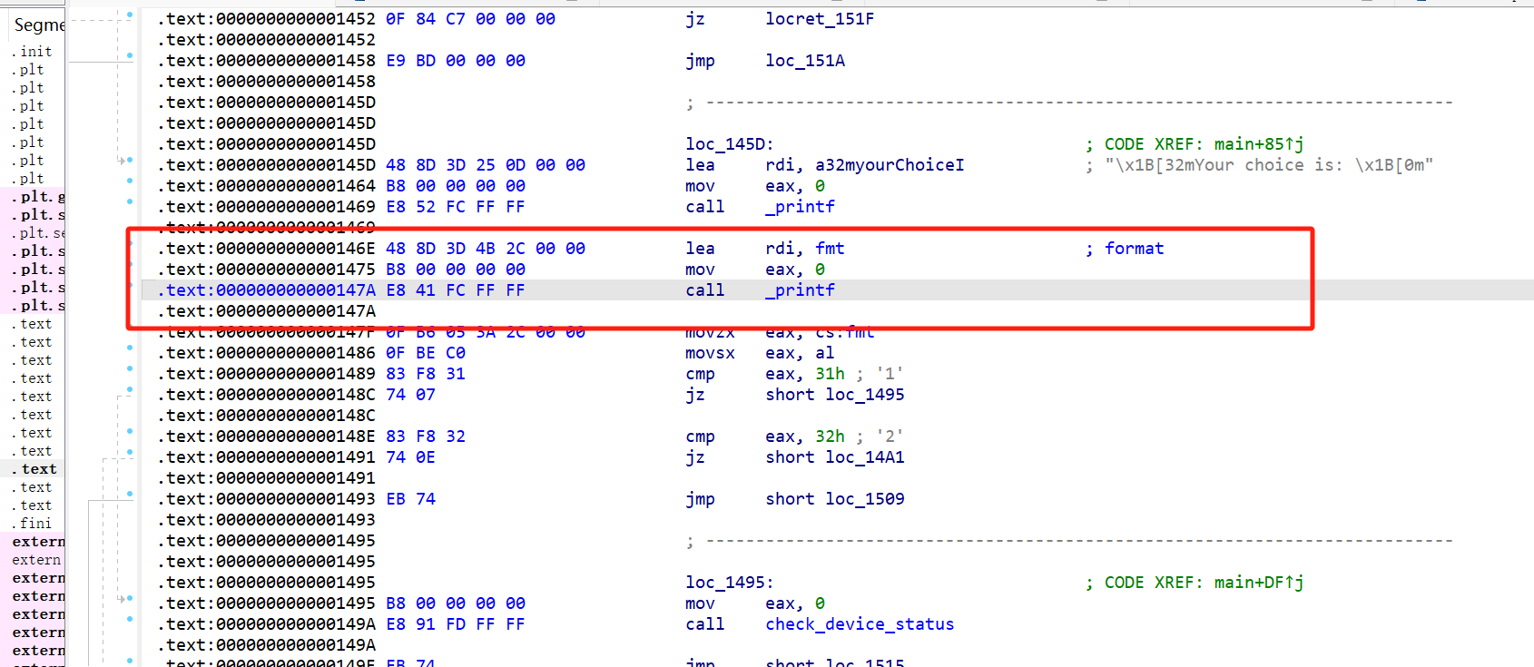 找到fmt漏洞的汇编: