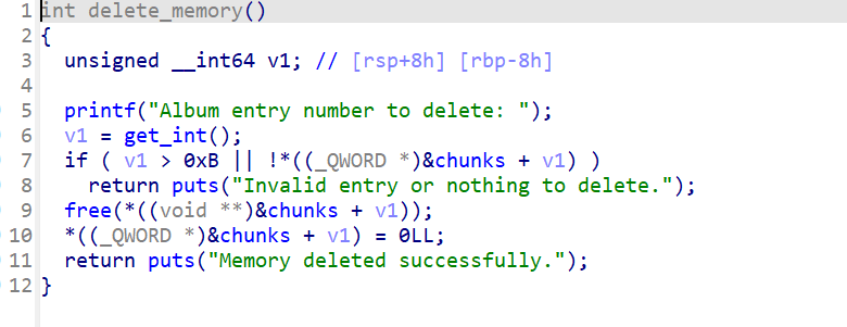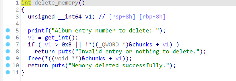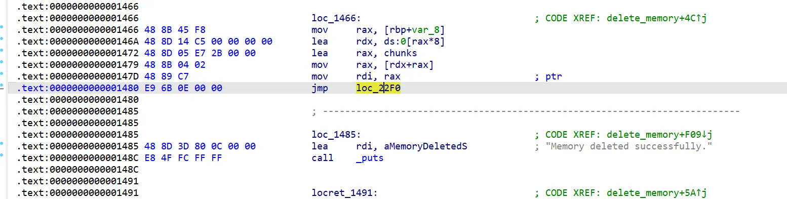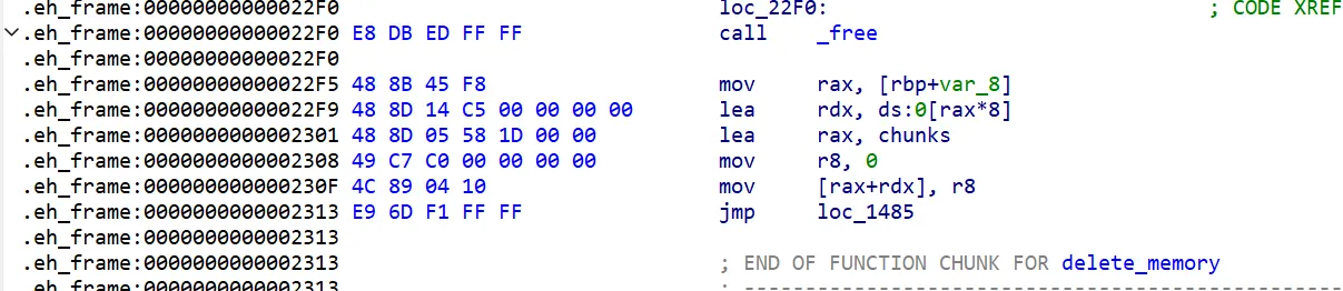 使用r8当介质,将chunklist[index]置零,最后跳转到call _free的下一段汇编