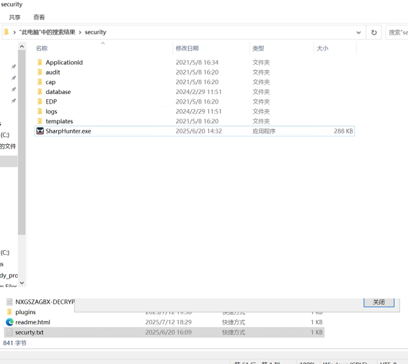 根据security.bat文件,查找到了security文件,里面找到了恶意信息收集软件:SharpHunter.exe